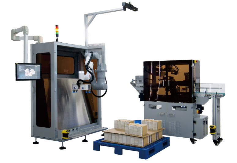 该产品是面向烟草行业研发的小盒商标纸自动上料系统。针对现有人工上料方式,劳动强度大、生产效率低、质量不稳定、自动化及智能化程度低等痛点,应用自动抓取、拆垛、拆包、视觉智能定位、托盘物料智慧物联等先进技术,实现了规范、准确和及时地控制小盒商标纸自动上料到包装机,在满足高速生产需要的同时,有效降低机台上料员工的劳动强度,提升了烟草生产工厂的智能制造水平。